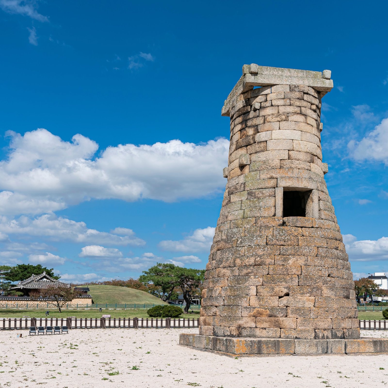 Visitez ensuite à pied le parc historique de Gyeongju, qui abrite de nombreux sites historiques importants : la tombe Cheonmachong « du cheval ailé » dont vous pouvez découvrir l’intérieur, le parc des tumuli, l’ancien observatoire, l’ancien frigo royal, les traces de l’ancien palais, le village ancien et Anapji : l’ancien jardin royal.
