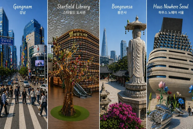 Le COEX Mall, immense complexe commercial, en est une illustration. Sa célèbre bibliothèque Starfield est particulièrement impressionnante visuellement.